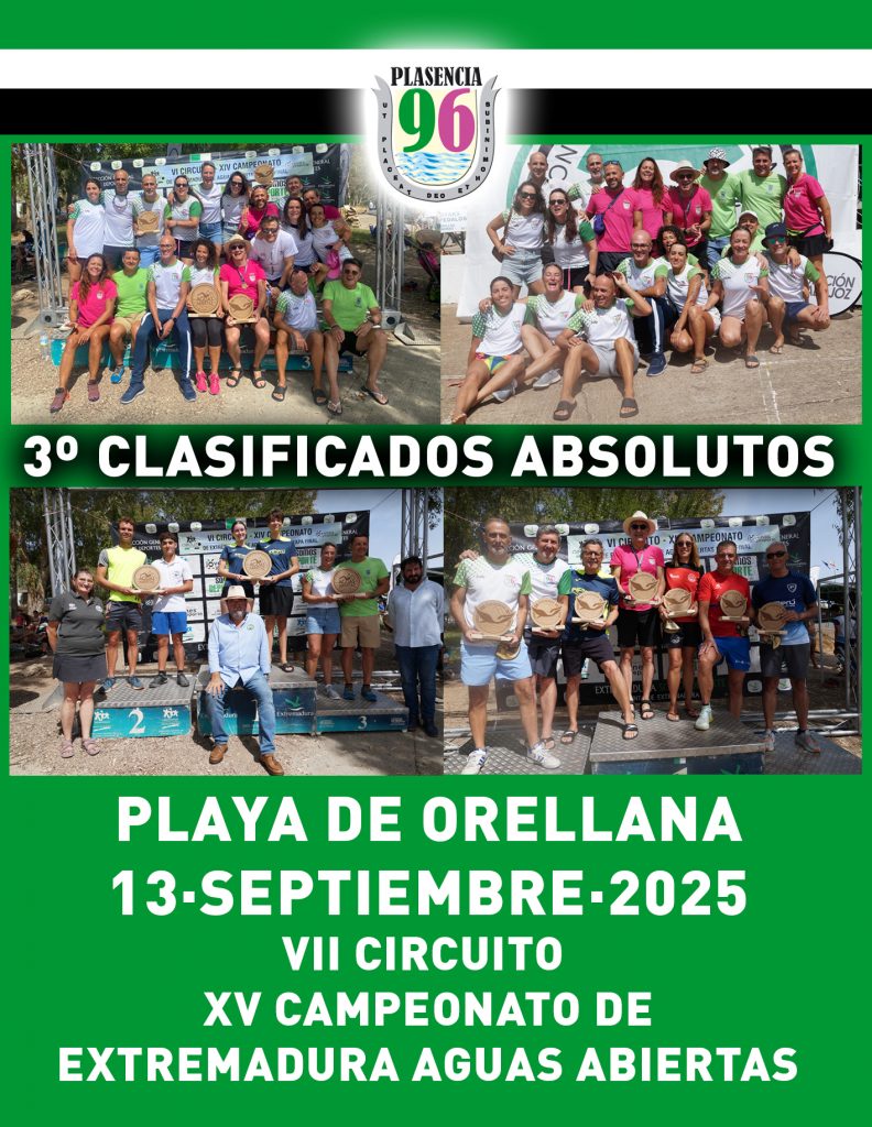 Gracias al esfuerzo y la constancia de sus deportistas, el club placentino volvió a subirse al podio absoluto del circuito, logrando una meritoria tercera posición. No solo repite presencia en el podio por tercer año consecutivo, sino que además alcanzó un récord histórico de inscritos en una única etapa, durante la prueba celebrada en Orellana. Un éxito que refleja el creciente amor y compromiso de este equipo por las aguas abiertas y la pasión con la que defienden los colores de la A.D. Plasencia 96.
